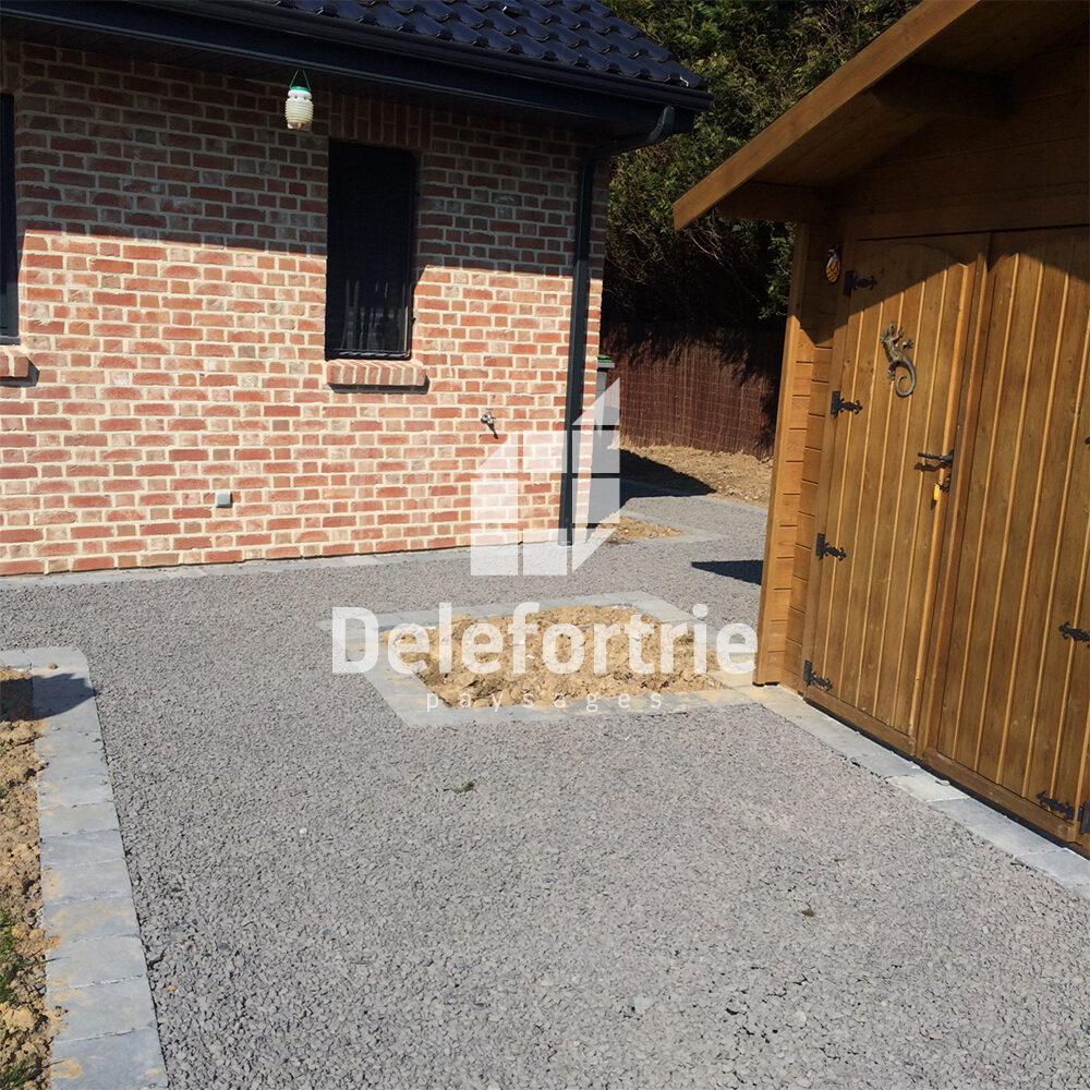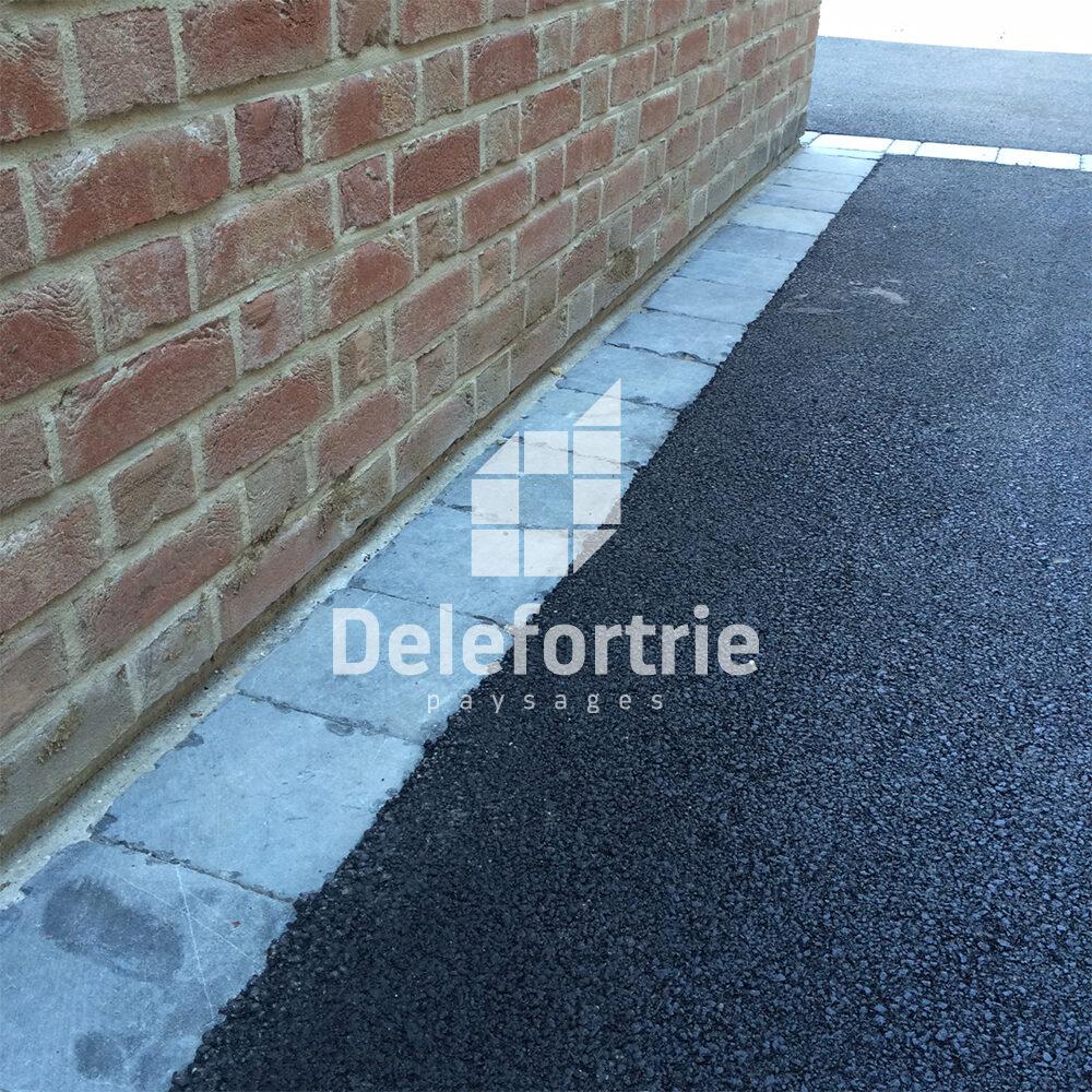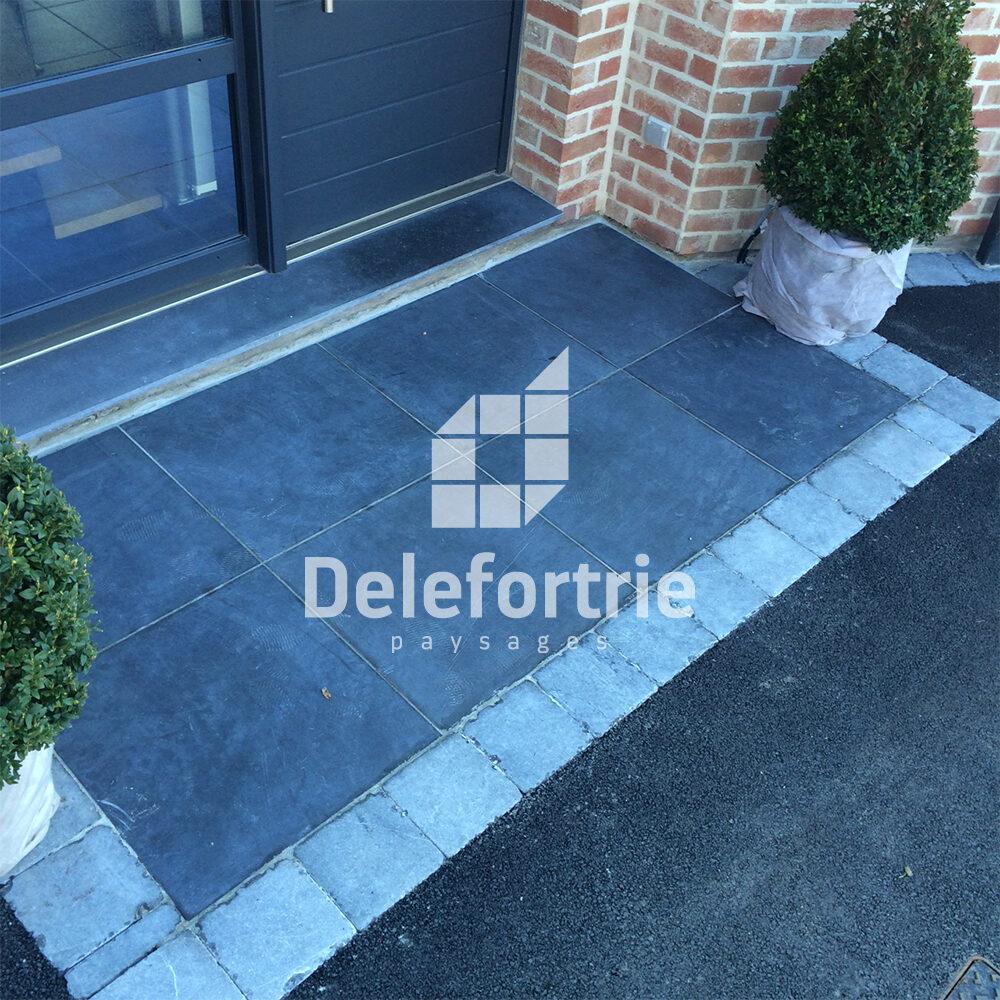 Sur les conseils de Delefortrie Paysages, on notera enfin que des dalles ont été posées juste devant la porte d’entrée de l’habitation, cernées de pavés.
