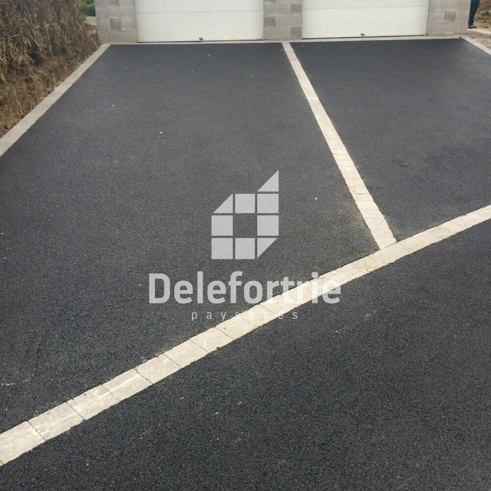 Les pavés béton teinté dans la masse (15*15*5) offrent une coupure moderne et délimitent le stationnement extérieur des deux garages. Le revêtement de sol en enrobé (épaisseur 4cm) est une solution durable pour les allés les plus souvent utilisées.