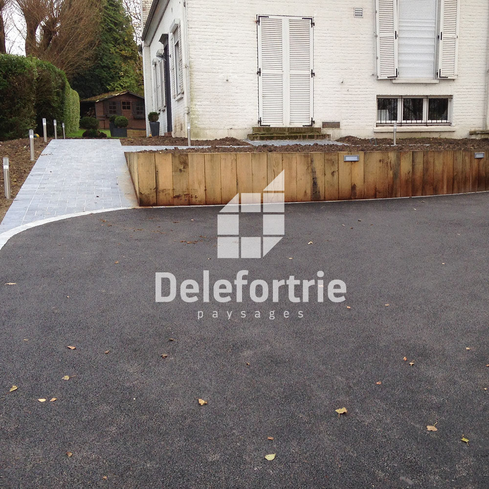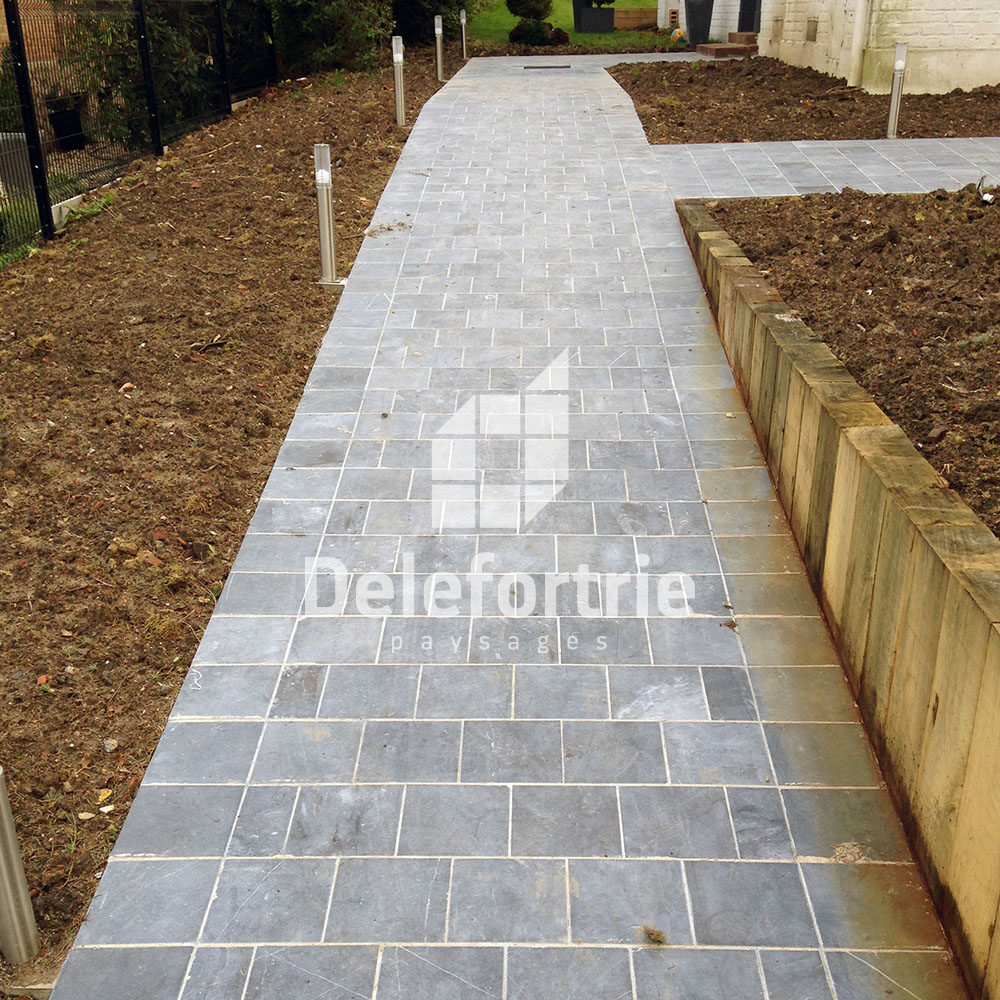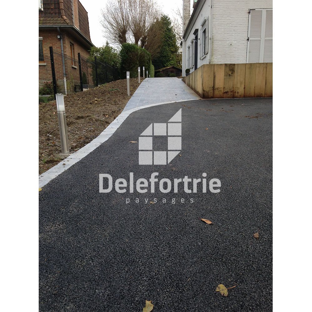Une allée de macadam secondée par un chemin pavé en pierre bleue devant votre demeure vous facilitera le passage tout en apportant une touche élégante et subtile.