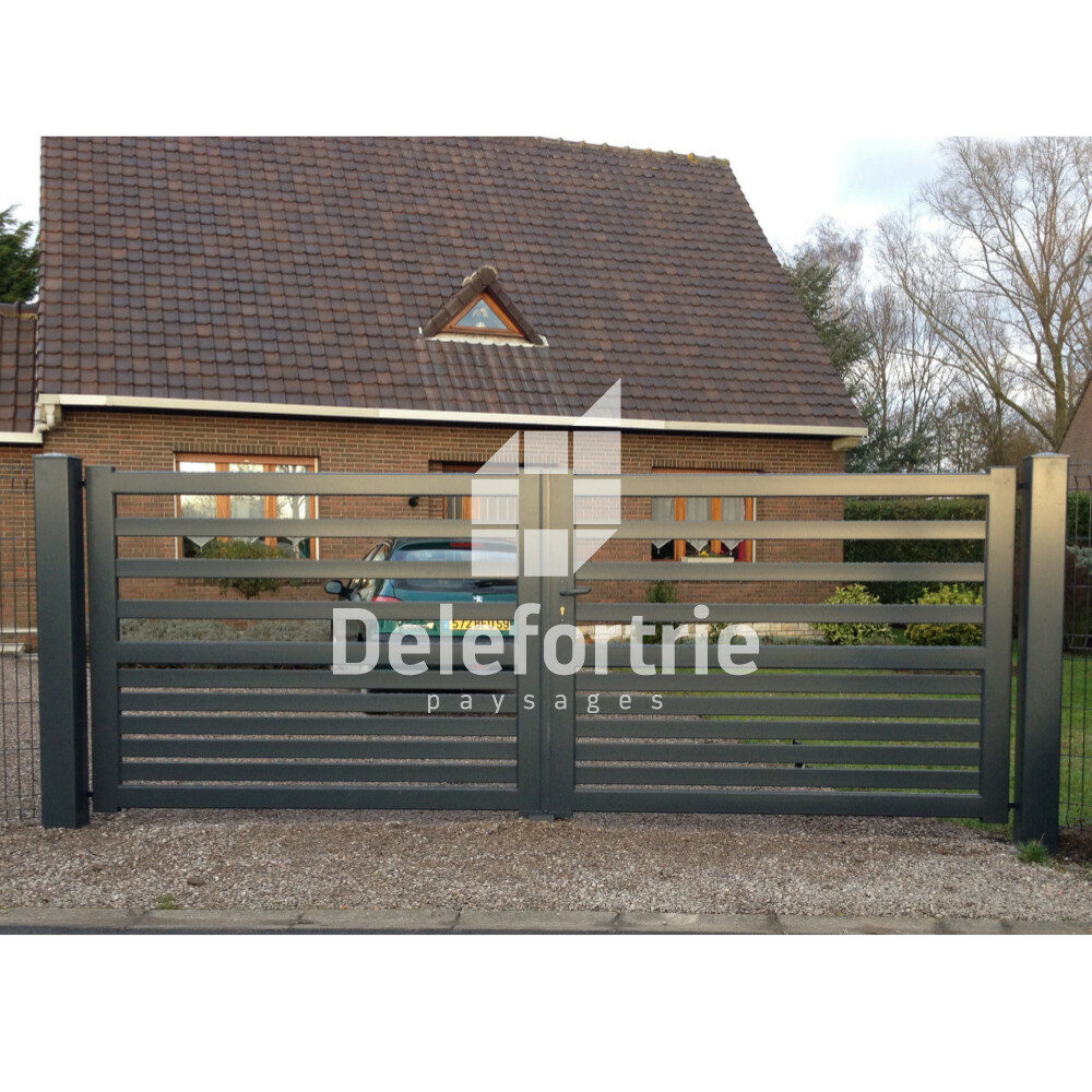 Découvrez ici la pose d’un portail double battant en aluminium soudé. Delefortrie paysage, spécialiste en aménagement extérieur, fournit et pose une large gamme de portail en aluminium et clôture rigide.