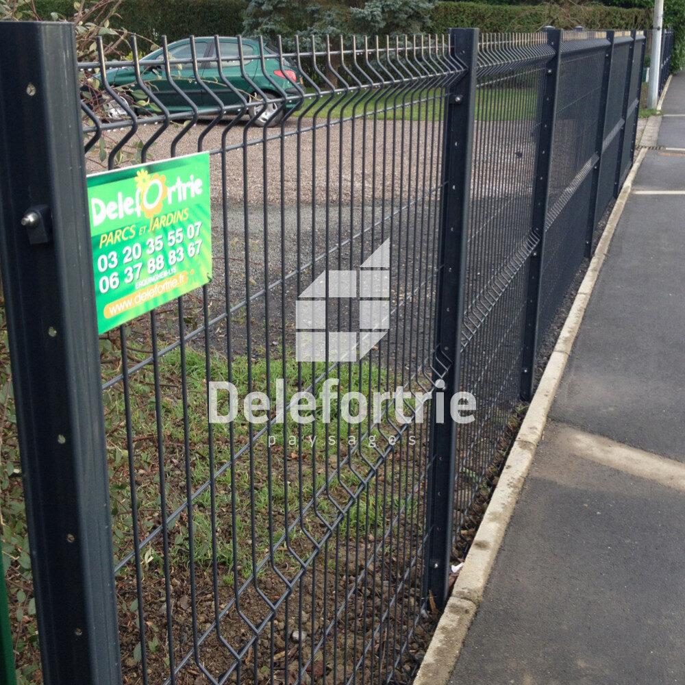 En vu de fermer la devanture , Delefortrie paysage à établis la pose de cloture rigide de chaque coté du portail. Pour tout type de portail aluminium soudé, n’hésitez pas à nous consulter pour effectuer une étude de faisabilité.