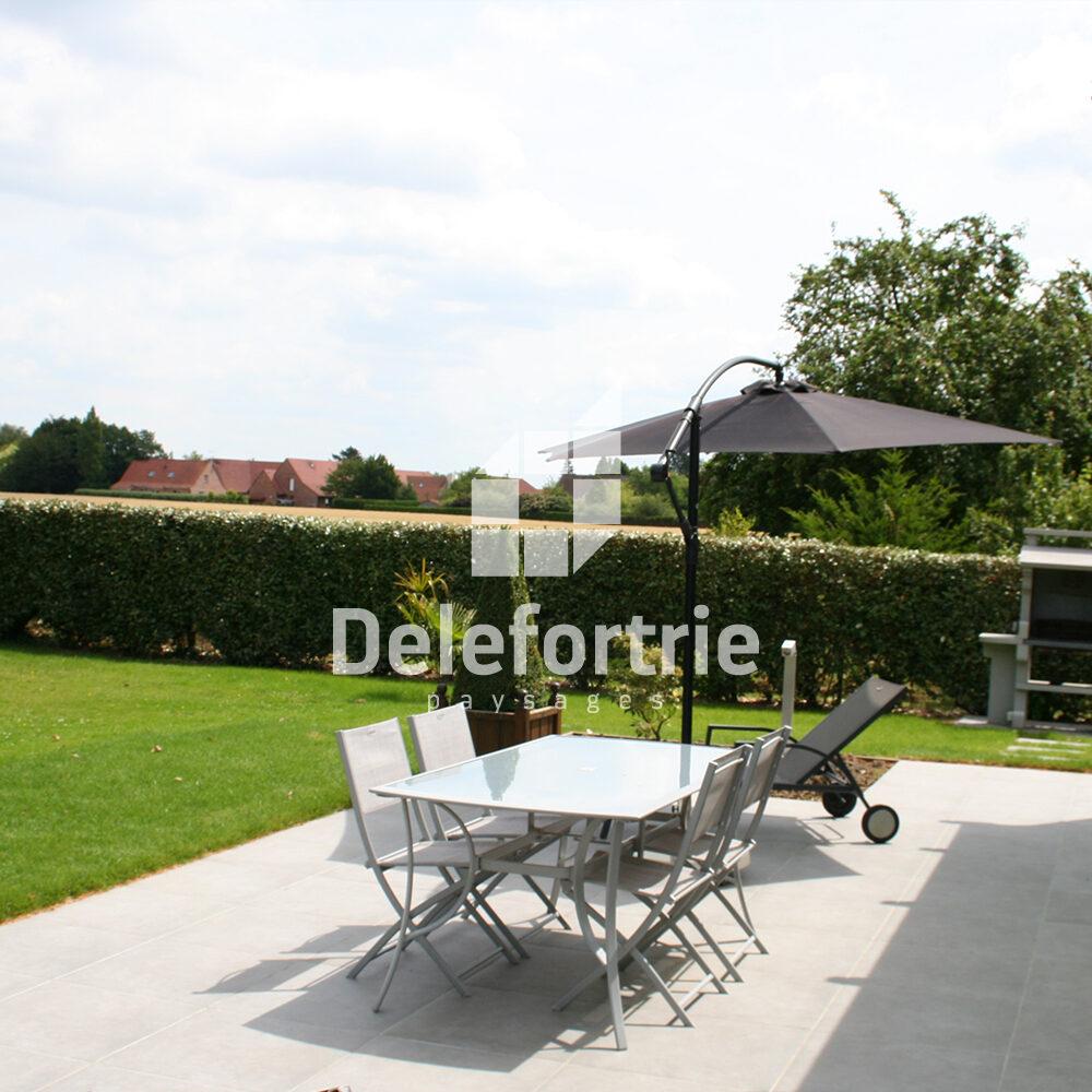 C’est un des atouts de Delefortrie Paysages que de pouvoir vous proposer des accessoires sélectionnés auprès de fournisseurs réputés qui font de chaque réalisation, comme ici à Fleurbaix, un ensemble original. Le cahier des charges qui décline le besoin exprimé par le propriétaire (en l’occurrence, dans ce cas, une terrasse) en tenant compte des contraintes (nature du sol, surface, relief, budget etc.) et de l’environnement est scrupuleusement pris en compte avec, dans sa réalisation, le souci constant d’allier qualité des matériaux, réalisation soignée, et ce qui fait aussi la réputation de Delefortrie Paysages : la faculté de proposer des « petits plus » qui contribuent à marquer tout aménagement d’un sceau spécifique, qui reflète d’une certaine façon la personnalité des propriétaires.